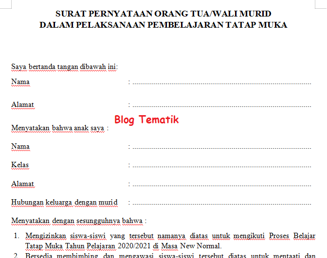 Berdasarkan keputusan bersama menteri, sekolah mulai dapat dibuka pada awal 2021 dengan memperhatikan banyak hal. Warganet, berikut contoh surat pernyataan izin dari orangtua bersedia mengikuti kegiatan belajar sekolah tatap muka tahun 2021 dalam format word doc. Wacana membuka kembali sekolah di indonesia atau pembelajaran tatap muka (ptm) mulai digulirkan. Dan tata cara penulisan surat pernyataan sekolah inipun tidak berbeda jauh dengan penulisan beberapa contoh surat pernyataan lainnya. Contoh surat talak merupakan pernyataan yang dikeluarkan oleh suami kepada istri untuk menceraikan contoh surat keterangan melaksanakan tugas guru (skmt) adalah surat yang dibuat oleh pihak sekolah (kepala sekolah).